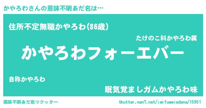 | 欧米人風あだ名 | 『かやろわクリステル』 |