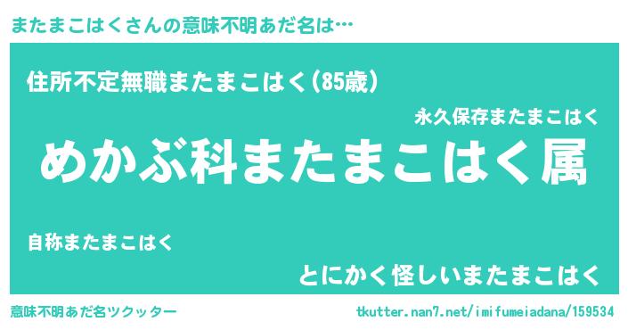 | 男性向けラノベタイトル風あだ名 | 『マタマコハクスレイヤー』 |