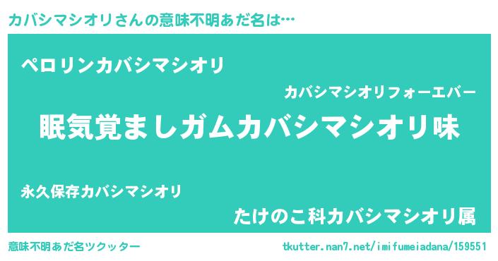 | 料理風あだ名 | 『カバシマシオリのトマト煮』 |