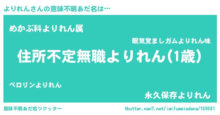 | ヘコむあだ名 | 『よりれん(小並感)』『よりっふぃ~』 |