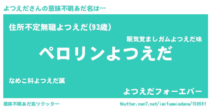 | 男性向けラノベタイトル風あだ名 | 『よつえだの憂鬱』『魔弾の王とよつえだ』 |