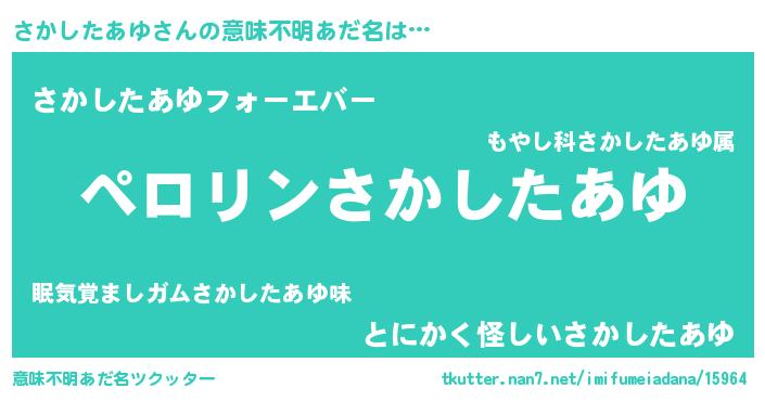 | ヒーロー風カッコイイあだ名 | 『スーパーサカシタアユ』『幻影騎士サカ』 |