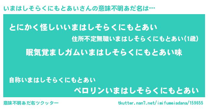 | 料理風あだ名 | 『いまはしそらくにもとあいのトマト煮』 |