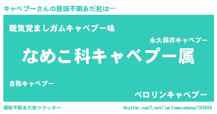 | 男性向けラノベタイトル風あだ名 | 『転生したらキャベプーだった件』 |