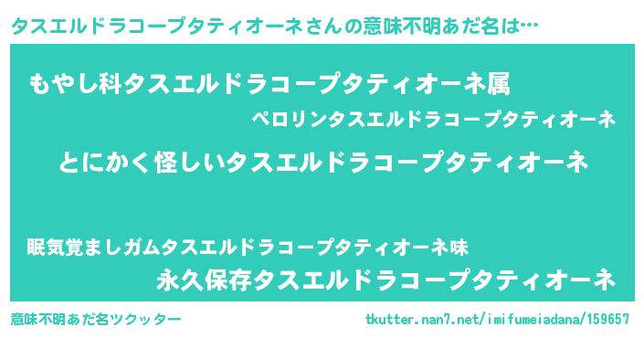 | 料理風あだ名 | 『タスエルドラコープタティオーネの豆乳スープ』 |