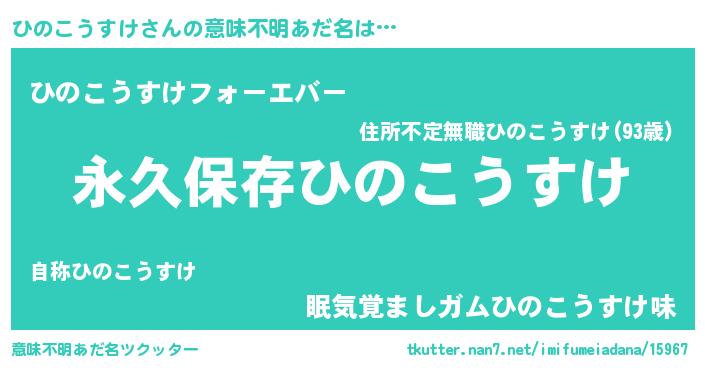 | 女子向けラノベタイトル風あだ名 | 『異世界でカフェひのこうすけを開店しました。』 |