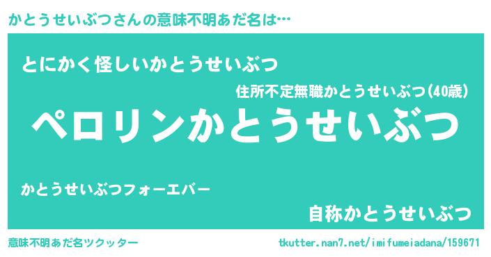 | 欧米人風あだ名 | 『かとうせいぶつ・ステッグマイヤー』 |