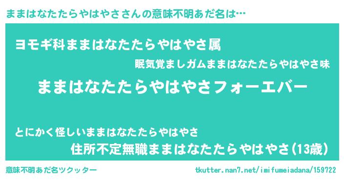 | ファンタジー風あだ名 | 『エターナルママハナタタラヤハヤサー』 |