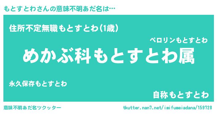 | ヘコむあだ名 | 『もとふぇ~』『もとすとわ(小並感)』 |