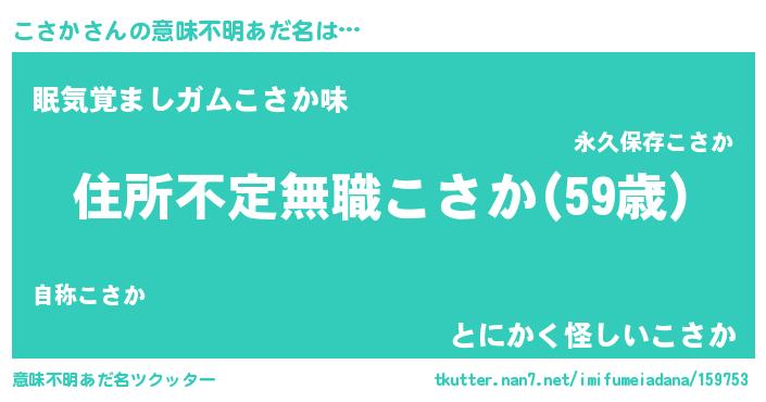 | 男性向けラノベタイトル風あだ名 | 『この素晴らしい世界にこさかを!』 |