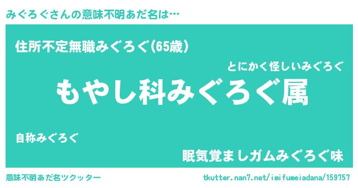| 男性向けラノベタイトル風あだ名 | 『転生したらみぐろぐだった件』 |