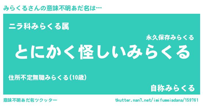 | 女子向けラノベタイトル風あだ名 | 『みらくるの卵を拾いまして』 |