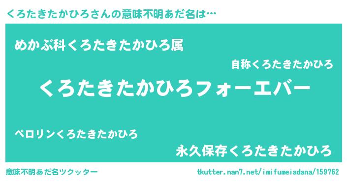 | 欧米人風あだ名 | 『くろたきたかひろクリステル』 |