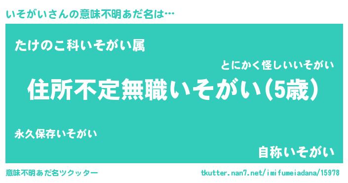 | 料理風あだ名 | 『いそがいのカルパッチョ風』 |