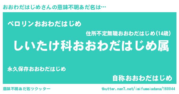 | 欧米人風あだ名 | 『おおわだはじめ・ステッグマイヤー』 |