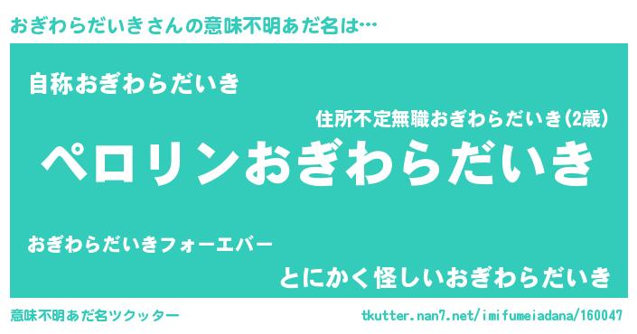 | 男性向けラノベタイトル風あだ名 | 『おぎわらだいきの憂鬱』 |