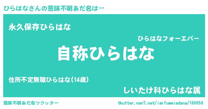 | 女子向けラノベタイトル風あだ名 | 『闇のひらはな』『ひらはなの契約王妃』 |