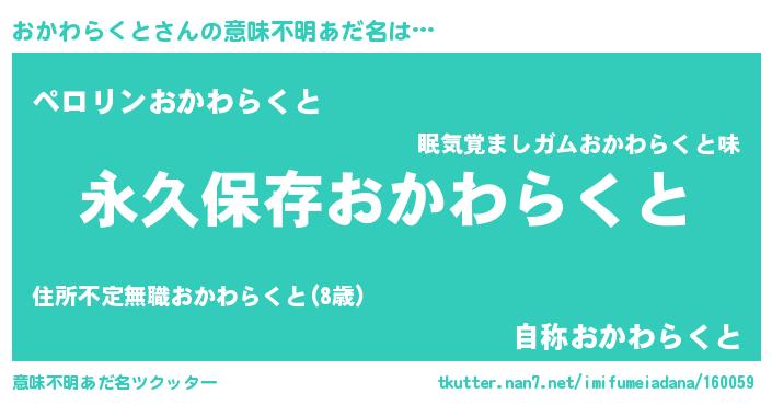 | 胡散臭い通販商品みたいなあだ名 | 『前代未聞の健康食品…その名も「おかわらくと」』 |