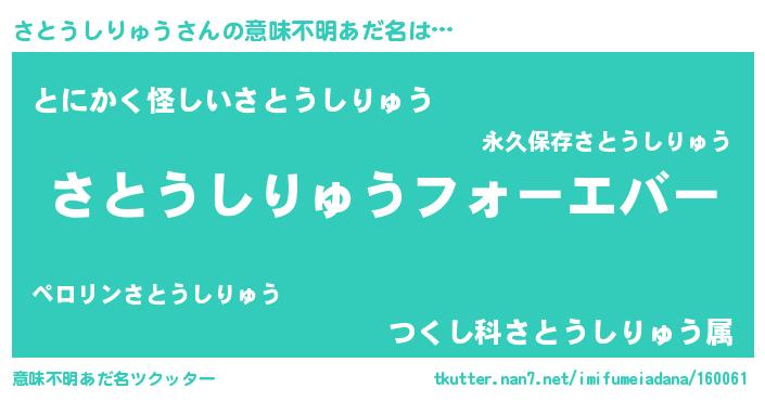 | ファンタジー風あだ名 | 『エターナルサトウシリュウー』 |