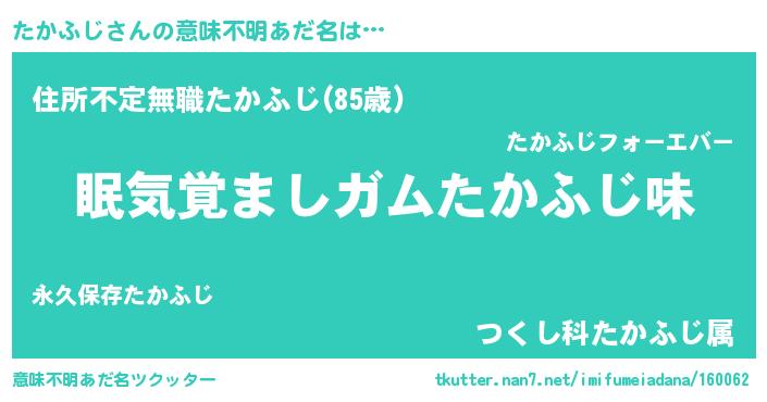 | 男性向けラノベタイトル風あだ名 | 『ノーゲーム・ノータカフジ』 |
