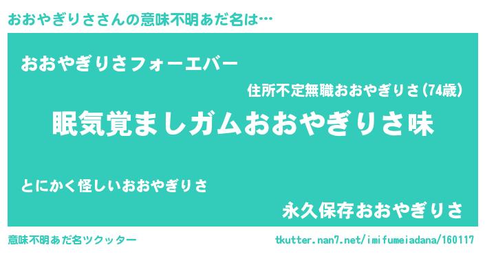| ヒーロー風カッコイイあだ名 | 『慈愛の使者おおやぎりさ』 |