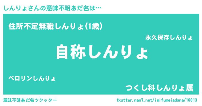 | ヘコむあだ名 | 『しんりょ(爆)』『しんにー』 |