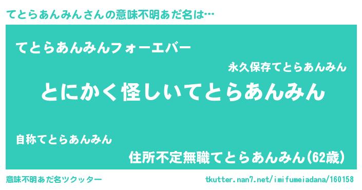 | 欧米人風あだ名 | 『ウサインてとらあんみん』 |