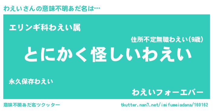 | ヒーロー風カッコイイあだ名 | 『炎刃騎士ワエ』『ウルトラわえいマン』 |