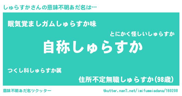 | 男性向けラノベタイトル風あだ名 | 『しゅらすかに滅ぼされるだけの簡単なお仕事です』 |