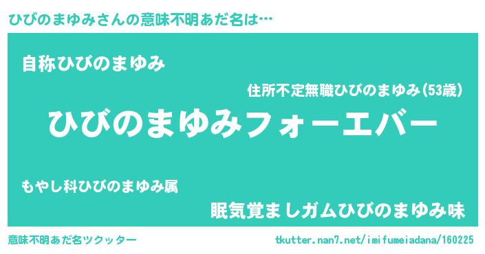 | ファンタジー風あだ名 | 『エターナルヒビノマユミー』 |