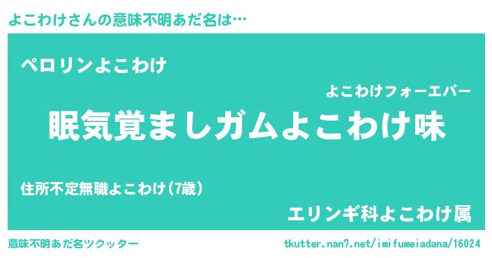 | 女子向けラノベタイトル風あだ名 | 『よこわけ恋絵巻』『よこわけ伯爵の花嫁』 |