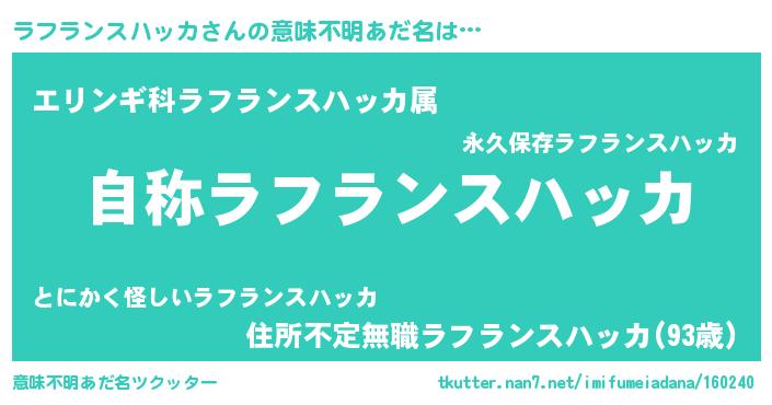 | ヘコむあだ名 | 『ラフランスハッカ(笑)』『ラフっぺ』 |