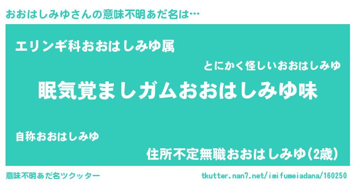 | 欧米人風あだ名 | 『ダニエルおおはしみゆ』 |