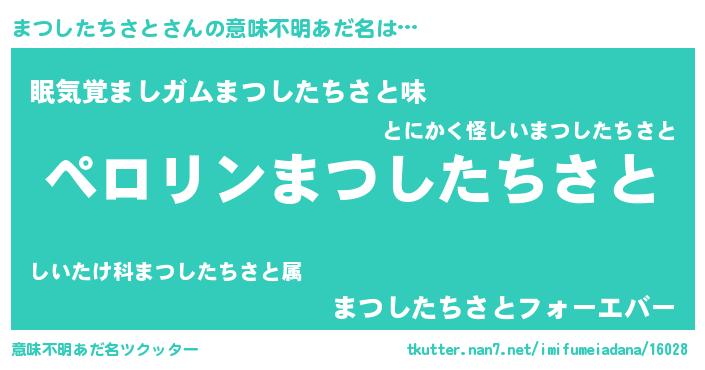 | 胡散臭い通販商品みたいなあだ名 | 『必ず成功するブレスレット…その名も「まつしたちさと」』 |