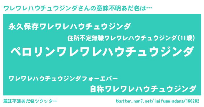 | ヒーロー風カッコイイあだ名 | 『スーパーワレワレハウチュウジンダ』 |