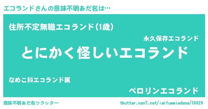 | 男性向けラノベタイトル風あだ名 | 『エコランドの嫁は女の子じゃないと思った?』 |