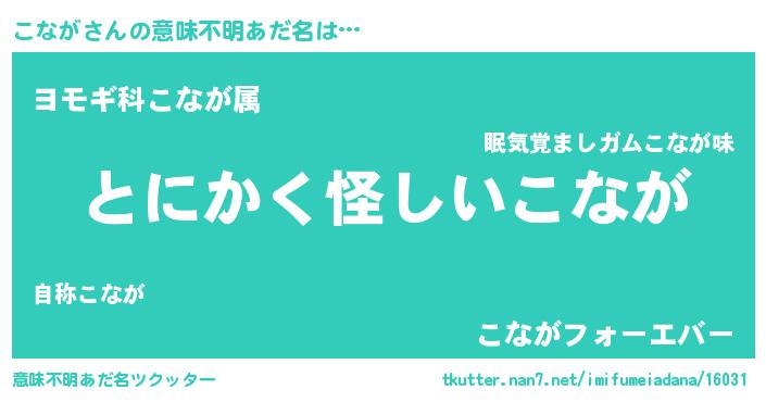 | 女子向けラノベタイトル風あだ名 | 『こながは平凡を望む』『こなが恋絵巻』 |