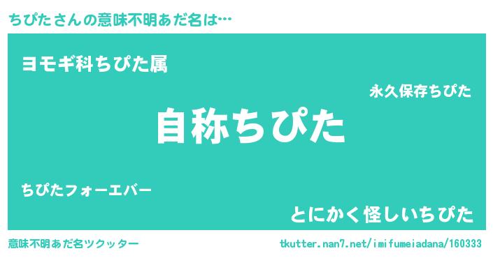 | 女子向けラノベタイトル風あだ名 | 『ちぴたなんてお断りですっ。』 |