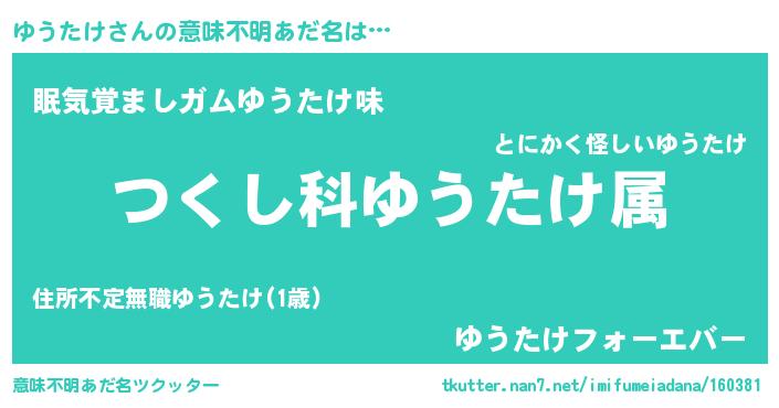 | ヒーロー風カッコイイあだ名 | 『慈愛の使者ゆうたけ』『幻影騎士ユウ』 |