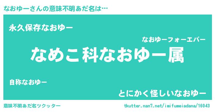 | 男性向けラノベタイトル風あだ名 | 『転生したらなおゆーだった件』 |