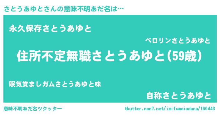 | 欧米人風あだ名 | 『ダレノガレさとうあゆと』 |