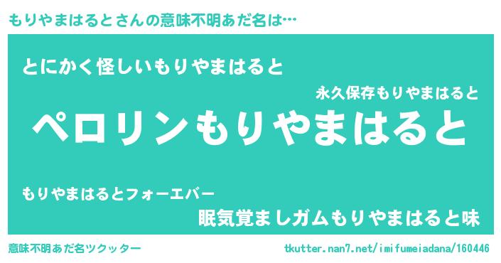 | 欧米人風あだ名 | 『もりやまはると・ステッグマイヤー』 |