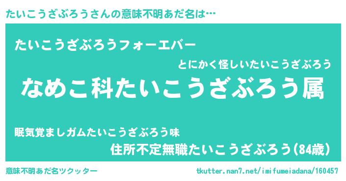 | 胡散臭い通販商品みたいなあだ名 | 『世界が平和になる高級そうな壺…その名も「たいこうざぶろう」』 |