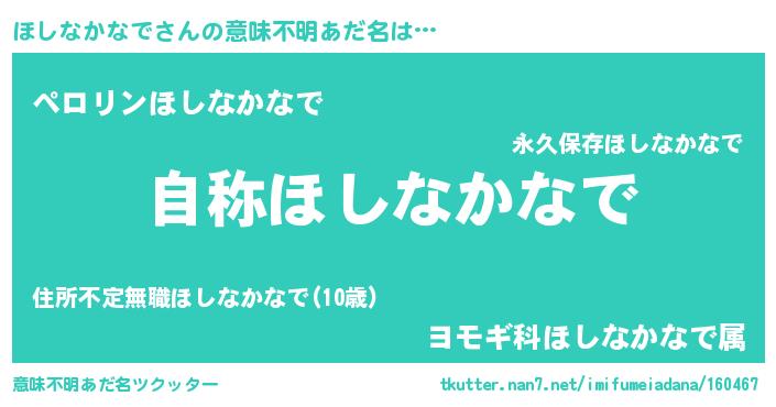 | 男性向けラノベタイトル風あだ名 | 『Re:ほしなかなでから始める異世界生活』 |