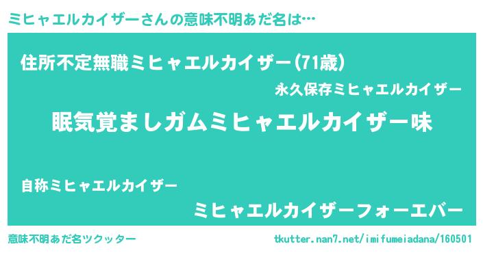 | ヒーロー風カッコイイあだ名 | 『慈愛の使者ミヒャエルカイザー』 |