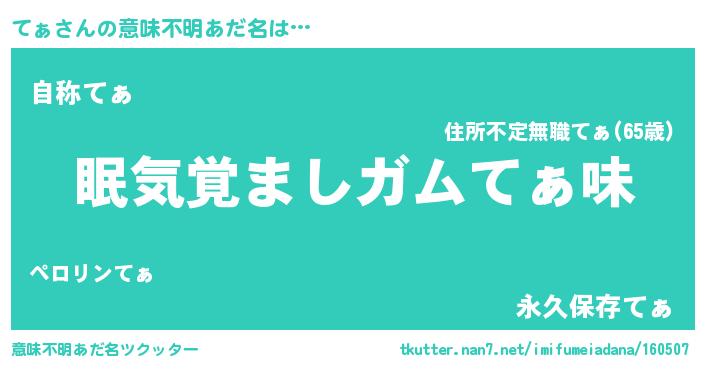 | ヘコむあだ名 | 『てぁ(小並感)』『てぁにー』 |