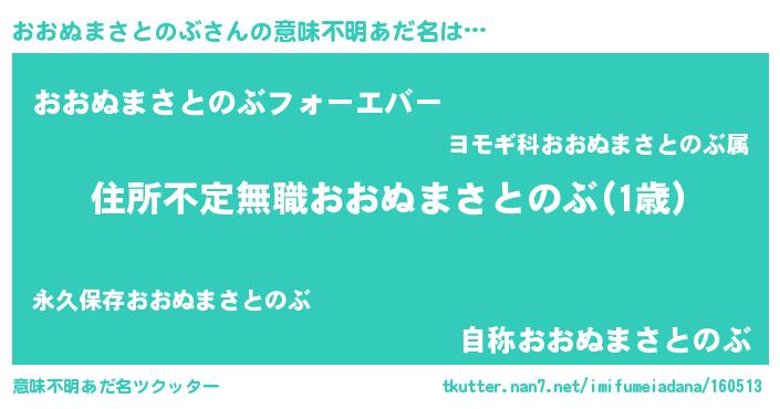 | 女子向けラノベタイトル風あだ名 | 『乙女ゲームの破滅フラグしかない悪役おおぬまさとのぶに転生してしまった…』 |