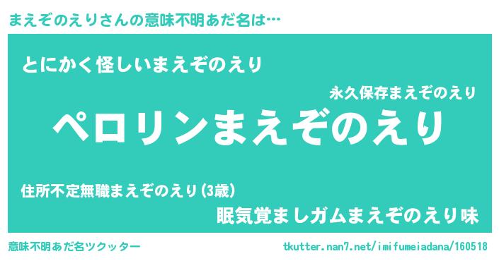 | 男性向けラノベタイトル風あだ名 | 『まえぞのえりの憂鬱』 |