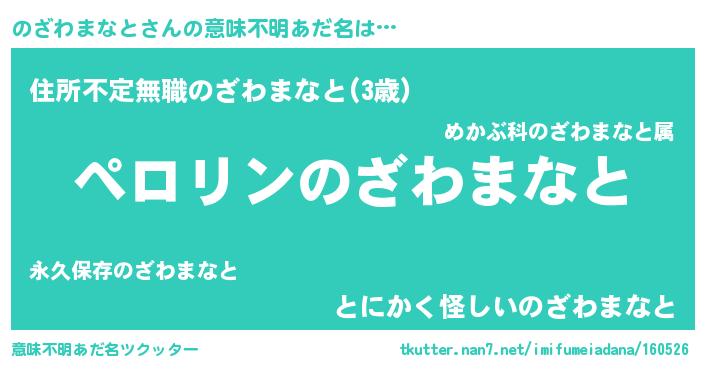 | 男性向けラノベタイトル風あだ名 | 『のざわまなとの憂鬱』 |