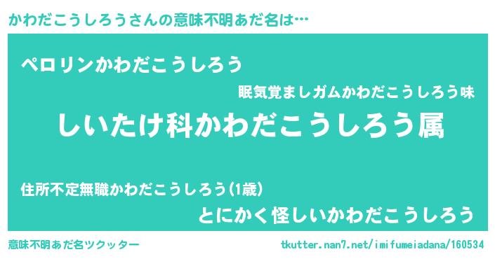 | 胡散臭い通販商品みたいなあだ名 | 『必ず成功する霊験あらたかなお札…その名も「かわだこうしろう」』 |